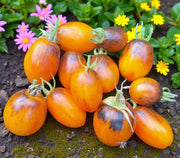 The Atomic Sunset Tomato is a dazzling artisan grape tomato that truly lives up to its name. With glowing golden-orange skin streaked in red and pink, each fruit looks like a miniature sunset. More than just beautiful, this variety delivers an outstanding tropical-sweet flavor balanced with a refreshing tang, making it a favorite among gourmet growers and chefs.