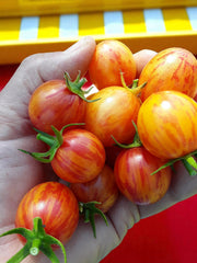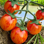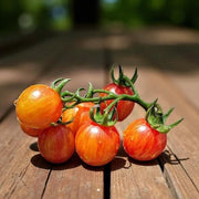 Brighten your garden and your plate with the Bumble Bee Sunrise Tomato, a visually striking heirloom known for its candy-striped appearance and sweet, well-balanced flavor. Its unique marbled yellow and red skin makes every fruit look like a miniature sunrise, turning any dish into a culinary showpiece.
