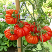 Plant in full sun with nutrient-rich soil, providing sturdy support as the vines grow vigorously. Regular pruning helps increase airflow around the ribbed fruits. For best flavor, harvest fully ripened tomatoes and use them at peak freshness for sauces and cooking.