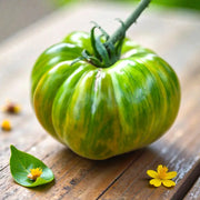 Stop settling for mealy, one-dimensional red tomatoes. Green Zebra is a visual and flavor powerhouse that challenged the "red is ripe" status quo. Developed by legendary breeder Tom Wagner, this variety stays emerald-green with striking dark-green longitudinal stripes that shift to a soft chartreuse-gold when peaking. It is the definitive choice for chefs seeking a bold, citrus-like acidity and a "zing" that cuts through rich ingredients, making it a permanent fixture in high-end culinary gardens.