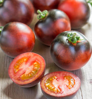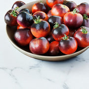 Indigo Rose tomatoes are prized for their firm, juicy flesh and unique flavor, making them versatile for both fresh and cooked dishes. The sweet-tangy balance and thick skin allow them to hold their shape when roasted, sautéed, or grilled. Their visually dramatic dark-purple exterior adds a gourmet flair to salads, salsas, and appetizers.