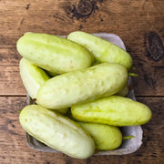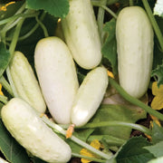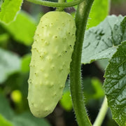 The Salt and Pepper cucumber is a visual standout that challenges the "green-only" expectation of the produce aisle. Developed for its striking ivory-white skin accented by tiny black spines (the "pepper"), this variety is a favorite among chefs looking to add contrast to a crudité board or pickling jar. Beyond its looks, it is widely considered one of the best-tasting pickling cucumbers available—possessing a thin skin that requires no peeling and a dense, crisp flesh that stays firm long after being sliced.